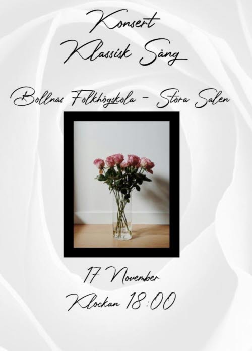 Måndagen den 17 november hälsar klassiska linjen, med inriktning sång och piano, välkommen till konsert.